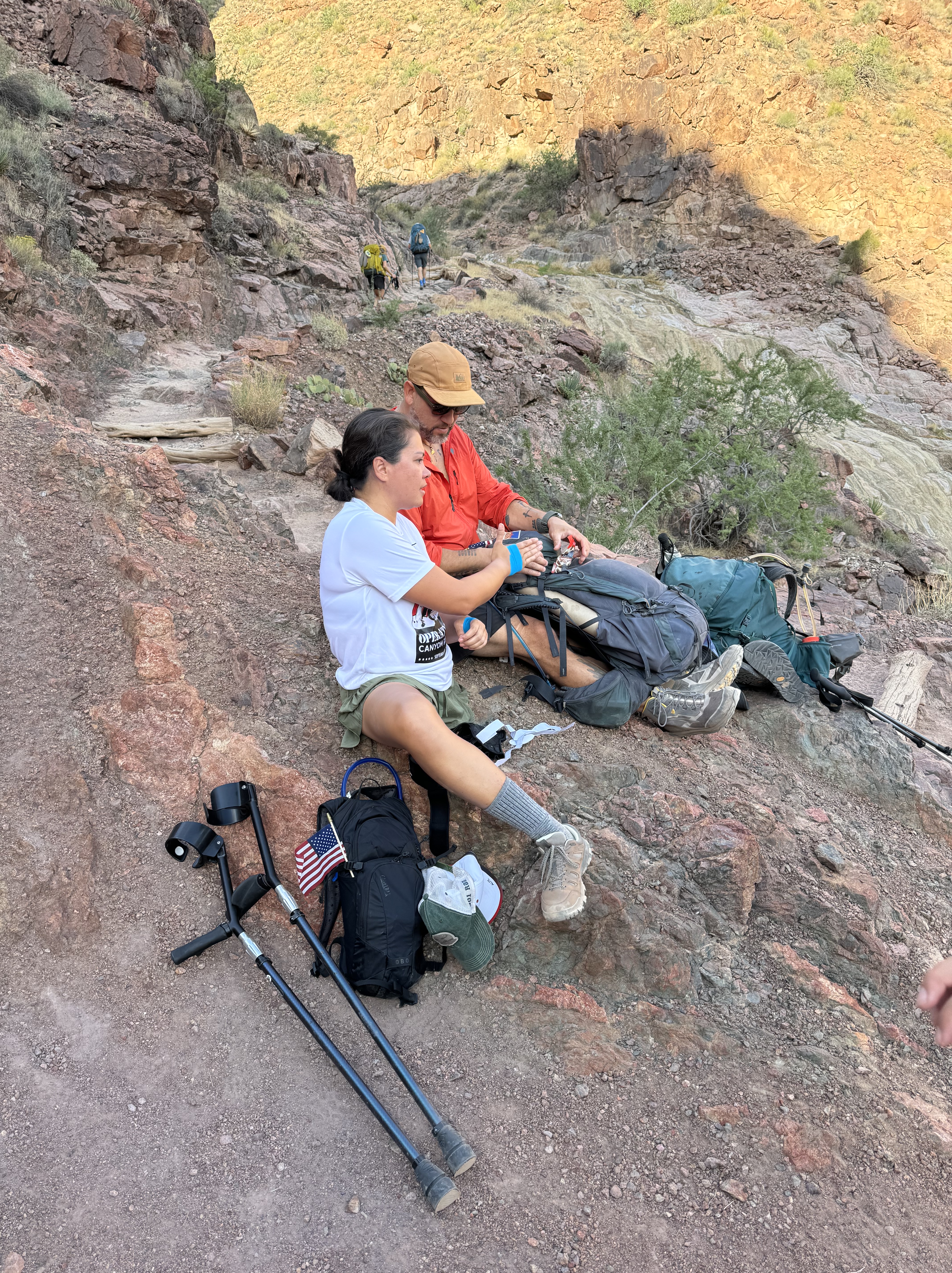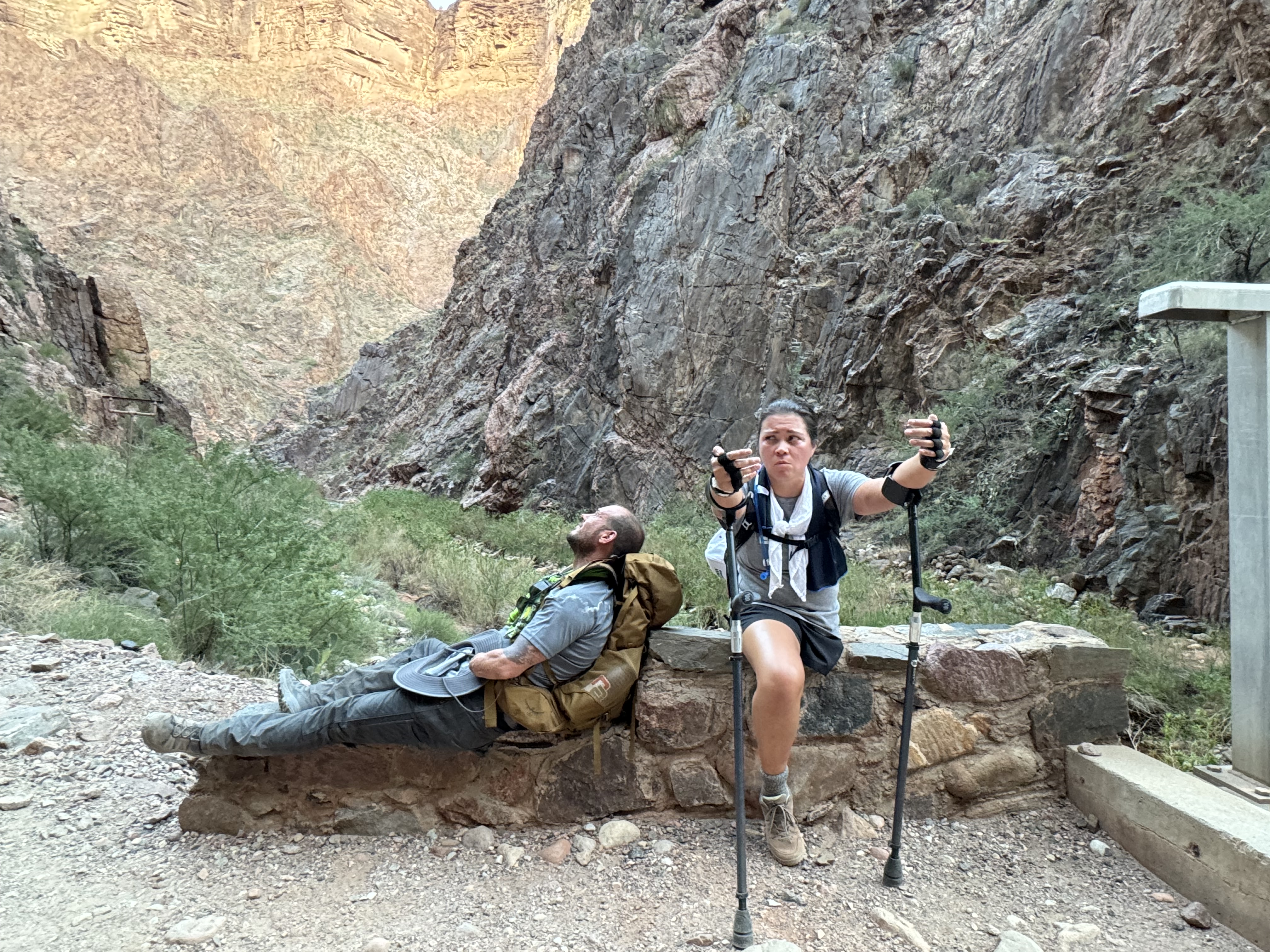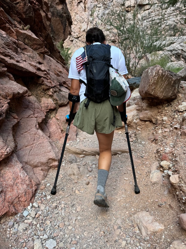 As a side note, we have not been able to determine that anyone else has ever completed the Grand Canyon Rim to Rim hike on crutches as Sarah had!