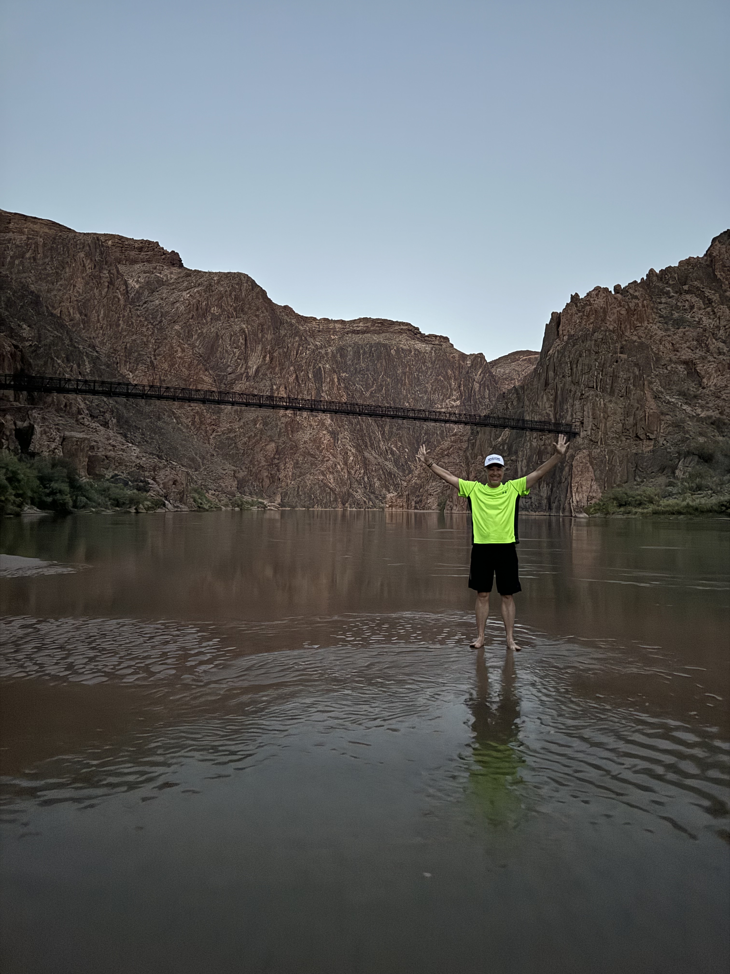 The next morning at 4:30 am, we started on our 14-mile journey to the bottom of the Canyon wearing headlamps to light our way. The temperature was very cool. As we descended and the day wore on it got very hot, over 100 degrees, and the sun beat down on us unmercifully with almost no shade. We all suffered but kept moving forward. We worked through the pain together and we arrived at Phantom Ranch at 6:30 pm, just as the sun set.